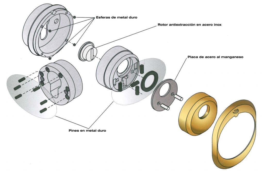 Se ha pasado del modelo de Gorjas que era en su momento el mas seguro y que llevaban instaladas las cajas fuertes. Hasta el momento actual que van de serie con el cilindro de perfil europeo con el sistema anti-bumping para evitar el ganzuado del mismo.